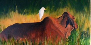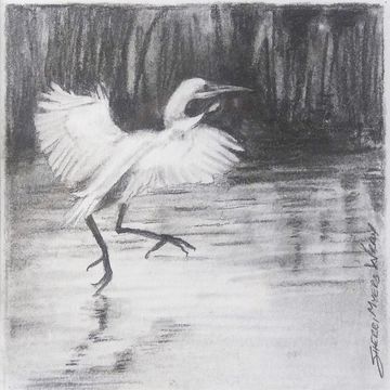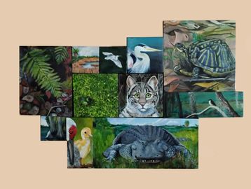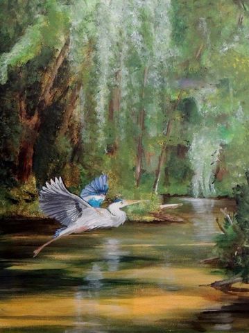 I dabble in many different mediums, but find my heart in acrylics. I believe the medium helps to tell the story. Many find it interesting that I sometime use bleach as a medium, a technique I learned from my high school teacher Berylle Clevering, a lady long gone but not forgotten.